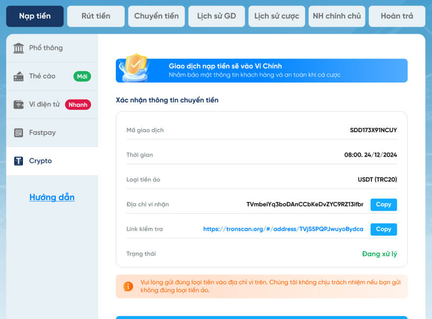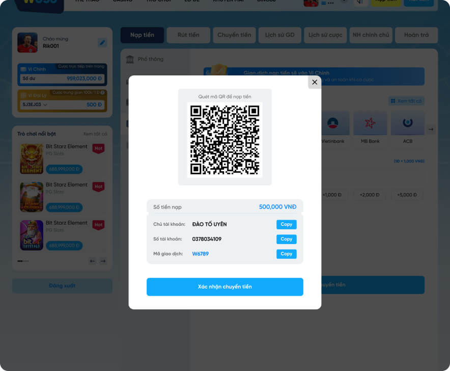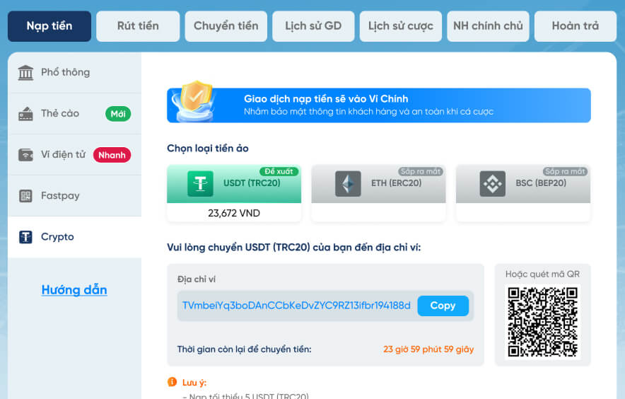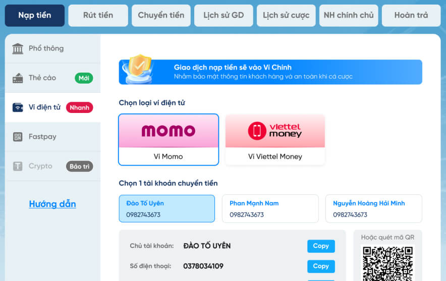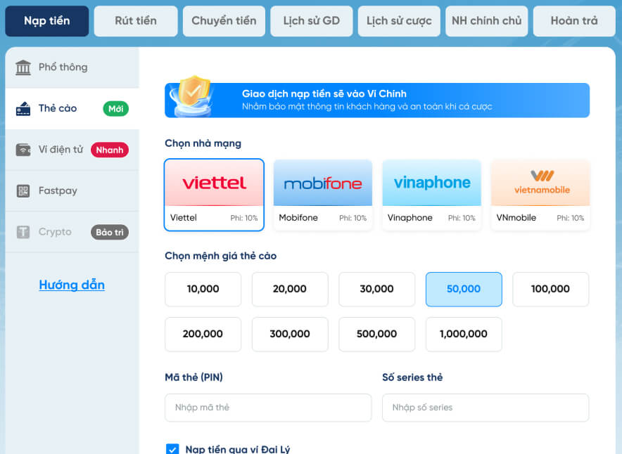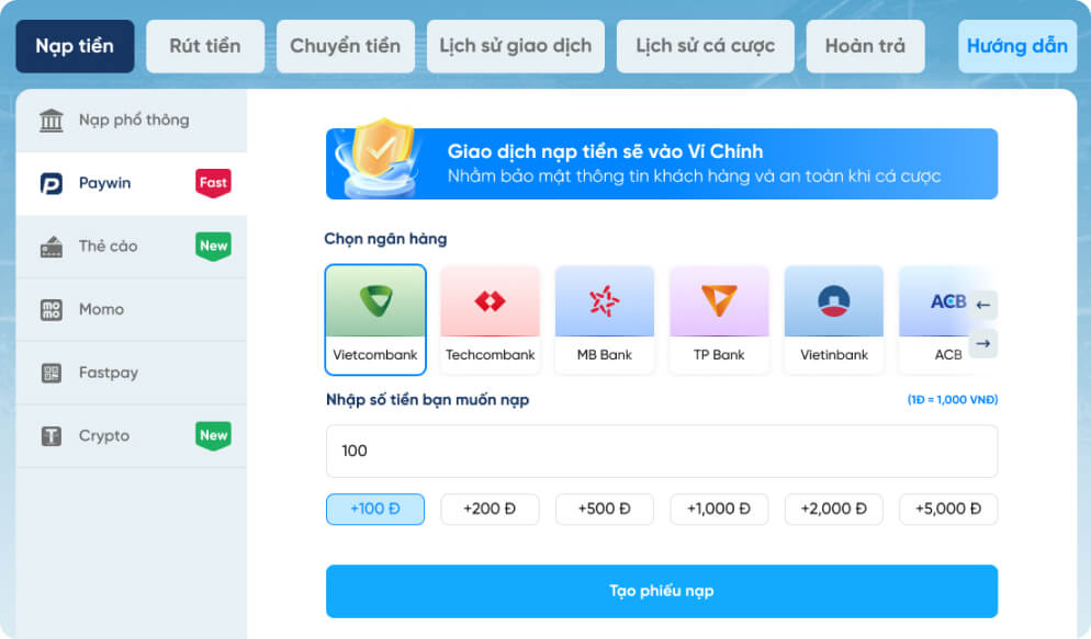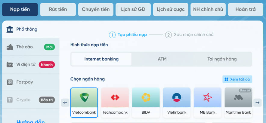 Hướng dẫn nạp - rút tiền