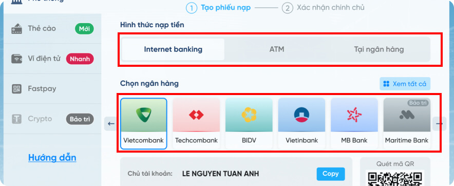 Hướng dẫn nạp tiền