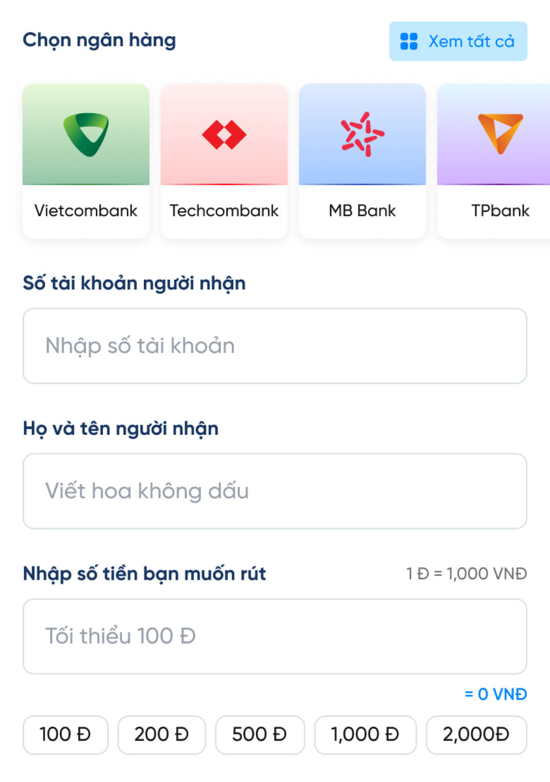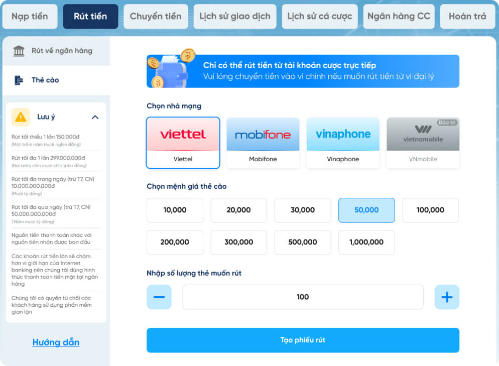 Hướng dẫn rút tiền