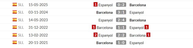 Lịch sử đối đầu giữa Espanyol và Barcelona trong những năm gần đây cho thấy sự áp đảo vượt trội của Barca. Trong 10 lần chạm trán gần nhất tại La Liga, Barcelona thắng tới 8, hòa 1 và chỉ thua 1.