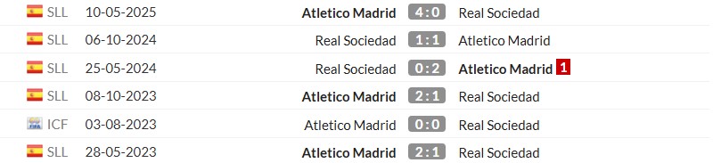Lịch sử đối đầu giữa Real Sociedad và Atletico Madrid trong những mùa gần đây nghiêng nhẹ về Atletico Madrid. Trong 6 lần chạm trán gần nhất tại La Liga, Atletico Madrid có 4 chiến thắng và 2 trận hòa, với phần lớn các trận đấu kết thúc với cách biệt tối thiểu.