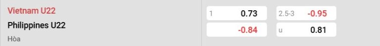 Bảng tỷ lệ kèo Việt Nam vs Philippines: